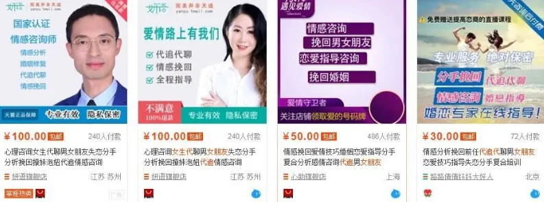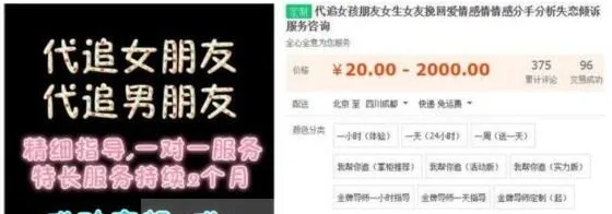 之前老李分享了一篇关于PUA的文章《PUA市场的诱惑,只需要晒聊天记录,每月轻松赚一万+》很多年纪小的同学都来找老李询问关于PUA的项目,其实呢这个项目已经属于是老项目了,只是上一期项目的推广方式真的简单有效,会为大家节省很多的时间,然后账号还可以卖上钱,绝对是稳赚不赔的买卖。 但是今天老李要给大家分享的项目,和PUA有关但更刚需,大家都知道PUA这套体系是从国外带到国内的,PUA鼻祖的话应该是一个叫“迷男”外国小伙儿,所有的PUA体系都是建立在他的一本名叫《迷男方法》这本书之上,这本书主要讲的是教你如何追女生,而国内有些别有用心的人,将理论知识进行整理,弄出一套五部陷阱操控大法,代表人物有死囚漫步、危险人物、小天等等,这些课程的核心就是教你如何速速推倒女生,然后进行情感操控,老李从侧面了解了一下,发现还是有点东西的,比如六芒星审判系统,综合价值评估,浪女信号,里面有一些公式,看样子还算靠谱,但后面的东西就不靠谱了,要坑人害人,给女性挖坑跳井,具体的老李就不懂了,即便是这样的课程,有很多年轻人还是不得要领,完全摸不到头脑,还是找不到女朋友。 这时候网上一些头脑活跃的家伙开始动了心思,在淘宝上提供一对一代追、代聊的服务。 口号就叫代你聊天、代你唠、啥也不管只管Cao,口号是响当当。