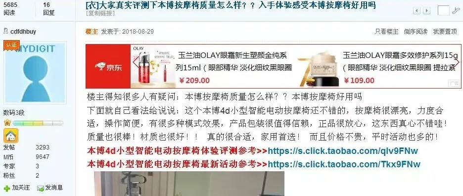 现在做一个网站的成本还是比较低的。因为别的站都是用一个栏目或者一篇文章来做,而我们是用顶级域名,整个网站内容都围绕这个品牌,所以排名会比他们好。 网站的内容从哪来? 转载加改编就可以,也可以在淘宝和其他电商平台的用户评价里面复制内容。 上面我们说的排名第一的网站,其实他的很多文章都是乱写的,像是软件生成的逻辑不通顺的伪原创文章。 你可以去看一下他这个网站的版权申明,他是这样写的:网站内容均来自于互联网整理,所有版权归原著作者所有。如若发现侵权内容,请联系我们,我们将会在48小时内作出反馈! 前面我们查过,百度上每天大概有1500人左右搜索“按摩椅”这个关键词,这就是需求。发现需求,找一种方式去满足需求,这就是赚钱项目的本质。 如果这个站让我来管理的话,赢利至少可以提高十倍。 淘宝客上的佣金,最少的也有几十元,很多都是几百到上千元一单,月销量都有几千件,如果是主推1000元佣金的,一个月有10个成交就是1万块,所以淘宝客这个赢利点必须要做。 一个月推出去10个难吗?如果你获得的是垃圾流量,肯定难,很可能一个月一个成交都没有,但是我们的流量不同,我们的流量都是在百度搜索按摩椅的人,是本来就已经想购买,只是还不知道买什么牌子好,这样的流量,转化率是非常高的。 如果不想在网站上直接放淘宝客链接,也可以引导用户加微信或者群,公众号,把用户牢牢抓住,以后随时都可以进行营销。这一步是很关键的,手里积累的粉丝用户多了,以后的收入根本就不用愁。 以上就是用网站来做按摩椅的方法,适合会建网站的人,如果懂点SEO,那就更容易了。 如果你不会做网站,可以加入无际崖会员进行学习,当然也可以不建网站,直接用网上免费的博客,或者其他能发文章的平台都可以,比如新浪博客、豆瓣、简书之类。 在这些平台上发布文章,文章中要有产品和你的联系方式,或者有你的淘宝客链接,其实就是软文。 要大量的发布,一篇软文发到几十个平台上,以量取胜,总有几个会在百度上排名靠前,只要你利用一切能发布内容的地方,小流量汇集起来,威力也很强大。 除了建站和发文章以外,我再给大家提供几个推广思路 第一个,是利用百度知道; 用电脑在百度上搜索:“本博按摩椅质量怎么样”,排在前面的有一个是百度知道,大家可以点进去这个页面看看。